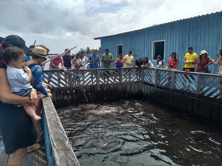 – Simule uma pesca de pirarucu e interaja com o maior peixe da Amazônia