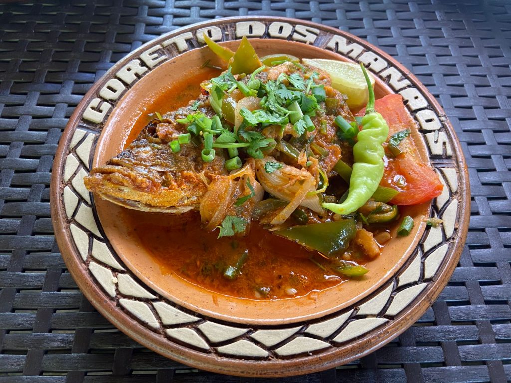 Outro prato que merece muita atenção e um lugarzinho no seu paladar é o “Escabeche de Tucunaré”, outro peixe da região que recebe um carinho especial da cheff Devany da Silva