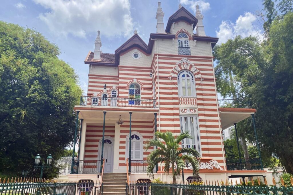 A propriedade em art recorda traços de castelos europeus. A área original tinha 5.500m2, com muitas palmeiras e era protegida por grades de ferro.
