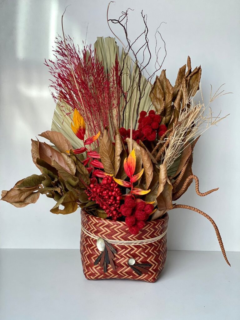 A artesã conta com muita modéstia que ainda não tem 1 ano trabalhando com isso “Iniciei com a prática de ikebanas, somente para minha casa , depois conheci as flores desidratadas e fui estudar, praticar e iniciei as vendas em junho desse ano, então estou com apenas 6 meses”.