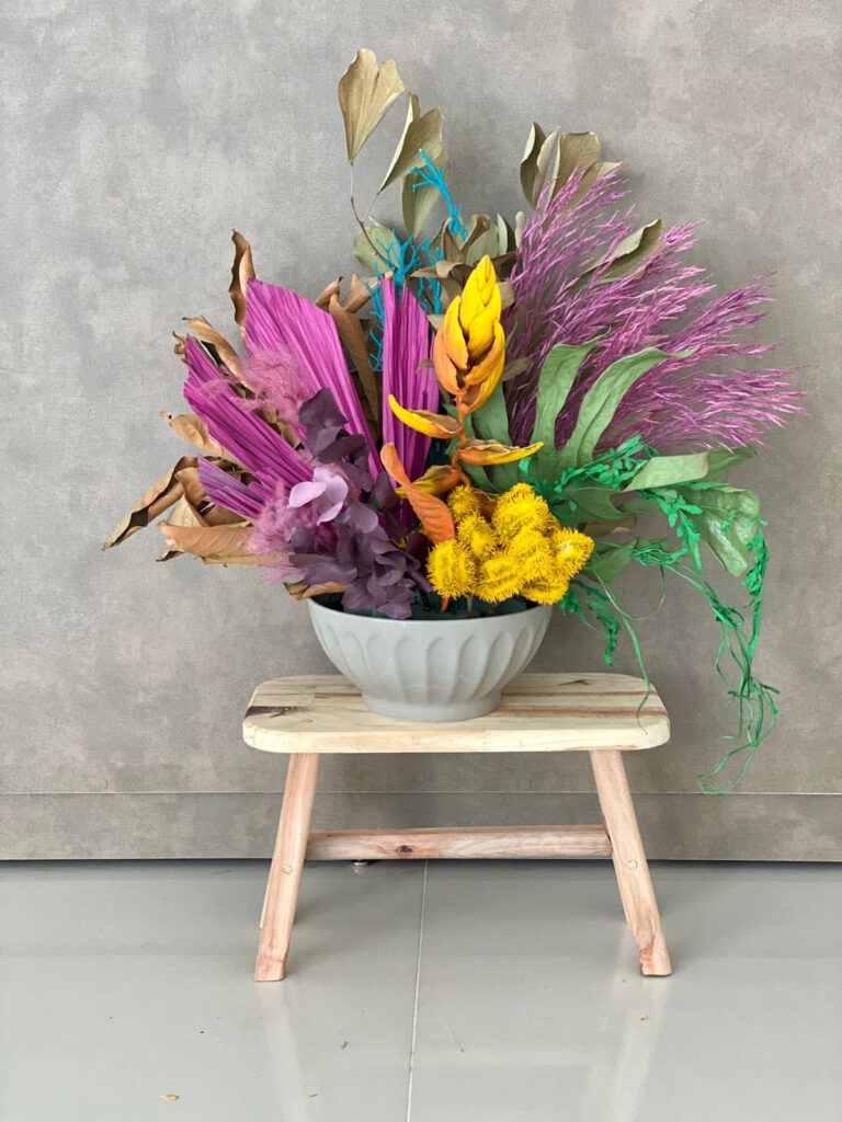 O conhecimento da artista foi adquirido durante os meses de isolamento na pandemia em 2020 “resolvi encontrar dentro de mim o que eu realmente amo fazer, encontrei o curso de arranjos com flores naturais desidratadas e me apaixonei, então estudei muito, fiz vários cursos até resolver da início as vendas” conta Márcia.
