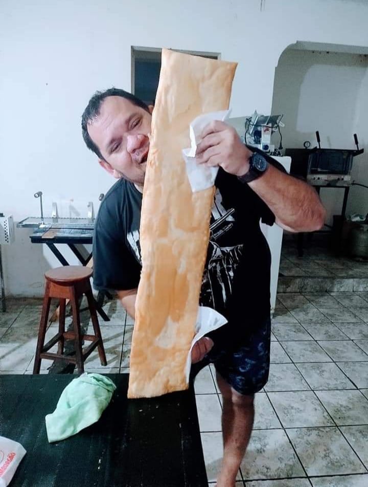 Agora para fazer esses produtos não é tão simples como você imagina, de acordo com o dono do estabelecimento foi preciso reformar toda cozinha, “o material todo teve que ser comprado por encomenda, outros eu tive que fabricar para poder atender essa demanda de pastéis com mais de 1 metro”, afirma o proprietário.