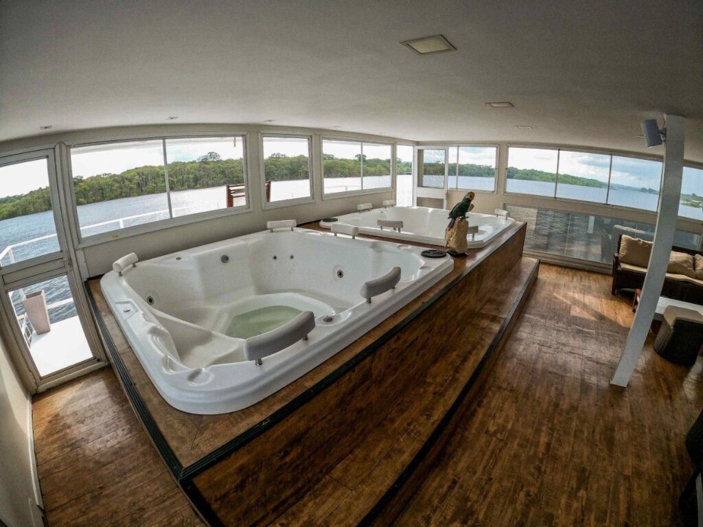 “O principal diferencial de um barco-hotel é o conforto e conveniência. Você tem academia, lavanderia, spa, piscina, bar, uma gastronomia de excelência, tudo isso com mobilidade. Você pode levar tudo isso para qualquer área em que o pescador precise exercer sua atividade”, explicou o empresário, que é proprietário do barco-hotel Rio Negro Queen.