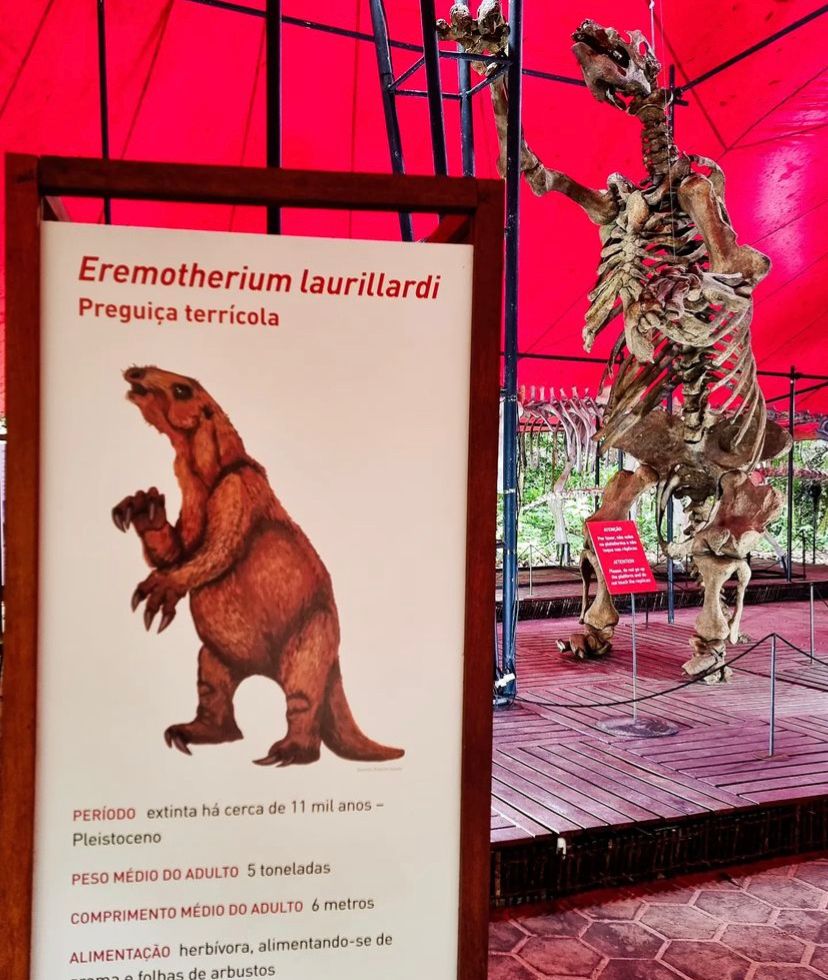 A preguiça-gigante (Eremotherium laurillardi) adulta teria seis metros de altura do focinho à extremidade da cauda e pesava cinco toneladas. Conforme o Musa, durante milhões de anos, a preguiça-gigante foi um dos maiores animais a habitar a Amazônia.