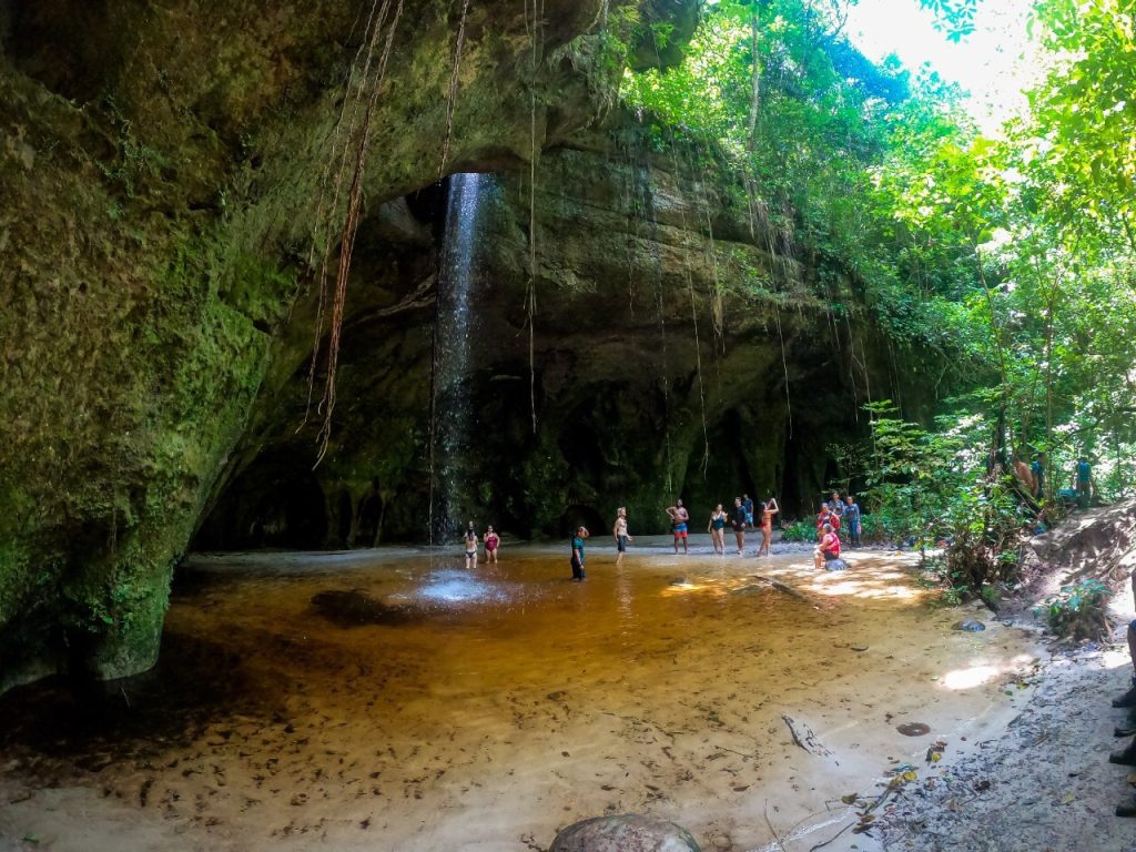 Com um visual impressionante, a Caverna do Maroaga tem o incrível formato de um portal com uma queda d’água na frente, onde seus visitantes podem se refrescar. Cercada por uma vegetação verde e intensa, a caverna é um oásis em meio a mata fechada e encanta com misteriosos túneis e galerias que ficam no seu interior.