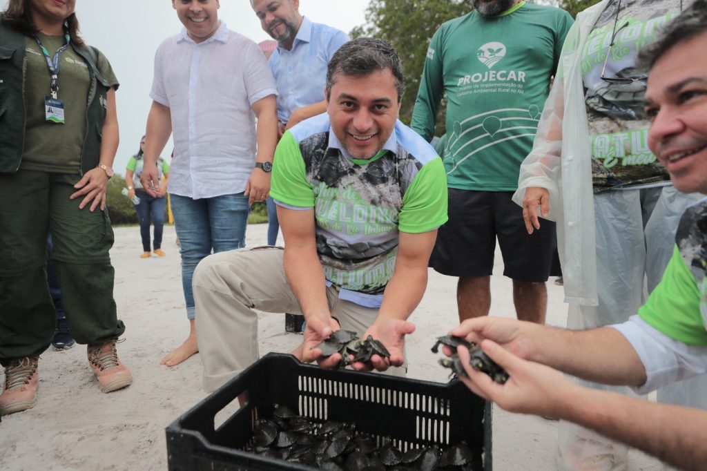 O governador Wilson Lima participou da soltura de 20 mil filhotes de tartarugas, tracajás e iaçás, na comunidade da Enseada, localizada na Reserva de Desenvolvimento Sustentável (RDS) do Uatumã, em São Sebastião do Uatumã (a 247 km de Manaus). A soltura de quelônios nesta quinta-feira (16) foi a maior de 2023. A Unidade de Conservação é gerida pela Secretaria de Estado do Meio Ambiente (Sema).
