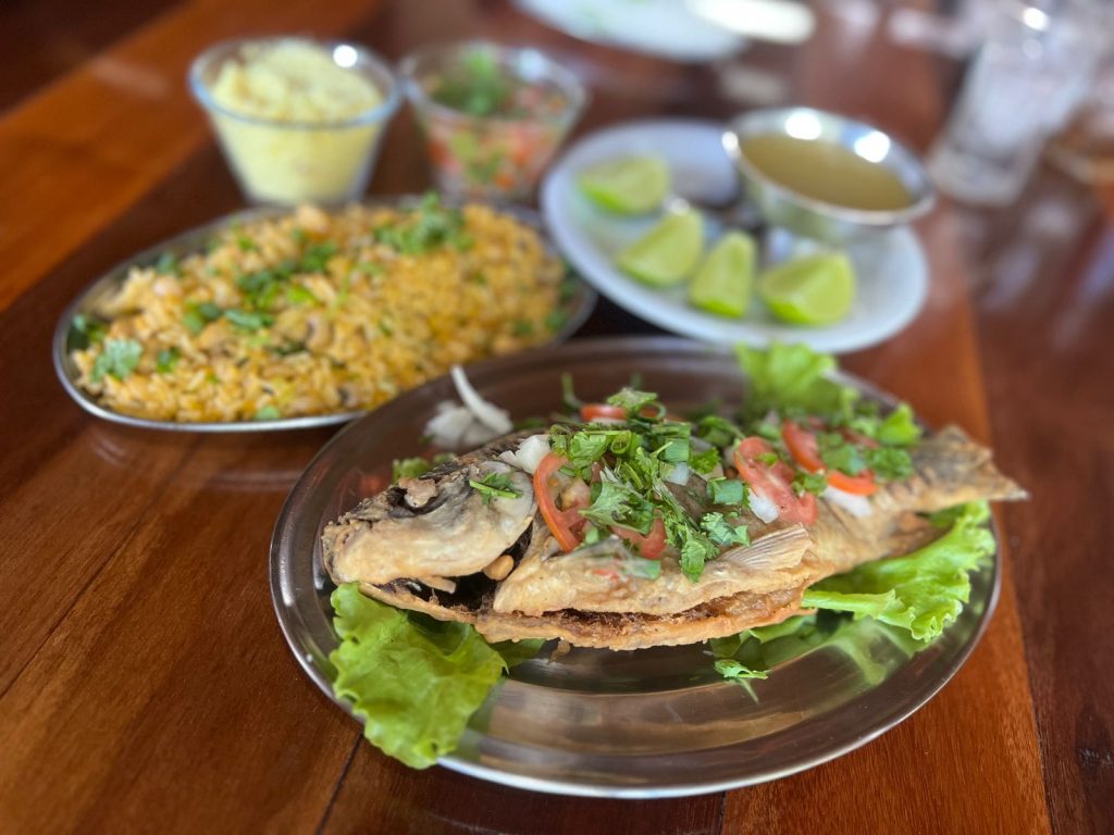 Lá você encontra desde o tradicional jaraqui frito com vinagrete e farinha ovinha, até a famosa e revigorante caldeirada de tambaqui, com ovo e aquela pimentinha murupí. Além de oferecer a deliciosa matrinxã recheada com farofa de banana frita, e o tambaqui sem espinha, ambos acompanhados de um baião de dois delicioso e uma vinagrete também sensacional.
