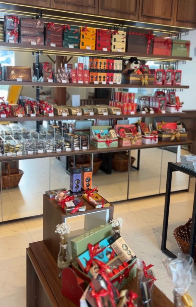 O espaço, além de muito confortável, oferece uma ideia geral da loja original da cidade do Sul do Brasil. Com diversas prateleiras recheadas com os mais diversos tipos de chocolates, doces, vinhos, geleias e guloseimas.