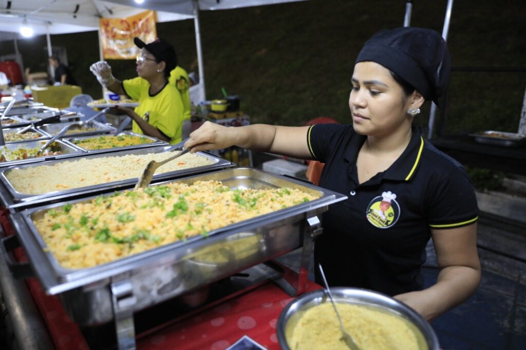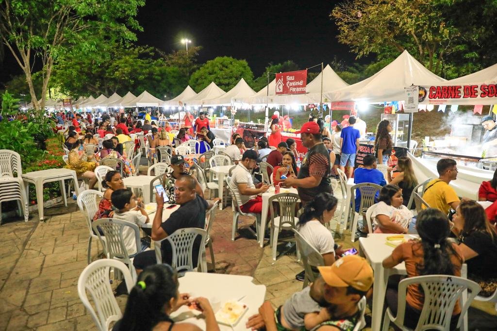 Enquanto as danças folclóricas da categoria ouro do 65º Festival Folclórico do Amazonas acontecem na arena do Centro Cultural Povos da Amazônia, uma parcela de empreendedores reforça a renda no mesmo espaço. O evento tradicional de valorização da cultura popular fomenta a geração de emprego e renda com a venda de produtos na praça de alimentação, feira de artesanato e entretenimento no espaço kids.