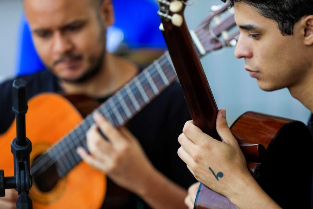 O professor de violão, Benjamin Prestes, endossa a importância da iniciativa, resgatando a experiência de quem já esteve do outro lado, sendo aluno do Liceu. “É diferente estar em sala de aula. Esse contato com o público é outra realidade. Eles (alunos) ficam nervosos, dá uma sudorese e isso tudo é muito normal. Mas no final, o aluno se supera e vê que não é um bicho de sete cabeças, é legal e quer voltar para o palco mais vezes”, disse Benjamin, também professor de ukulele e maestro da Camerata de Violões.