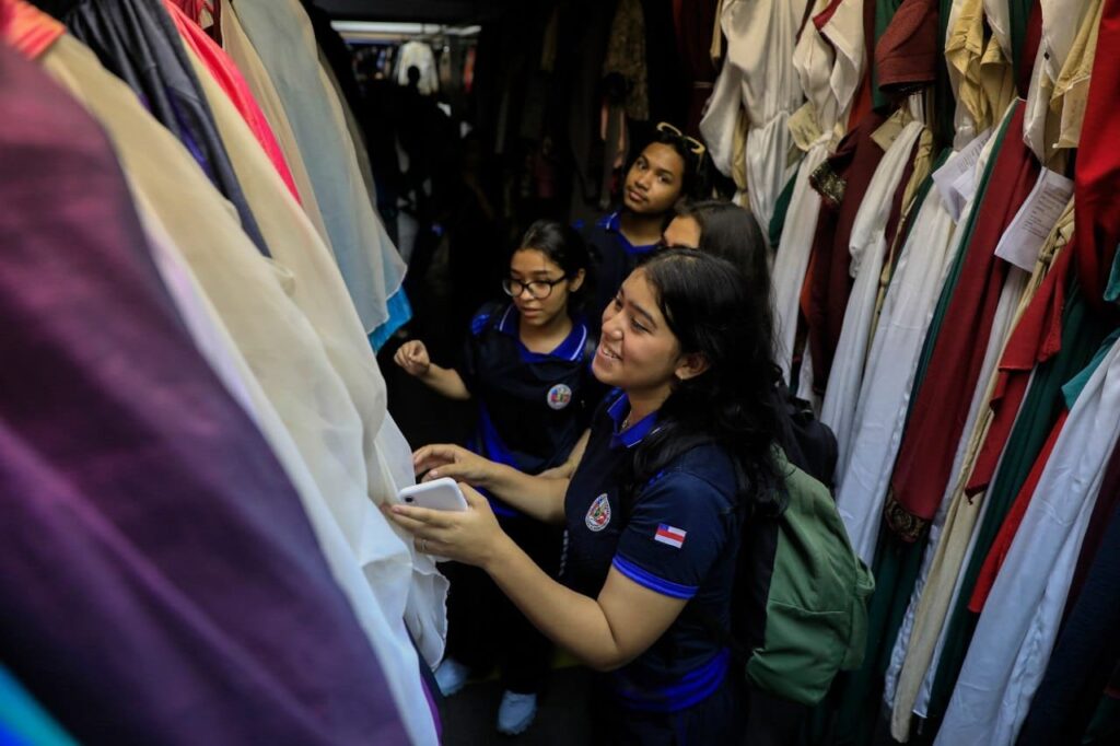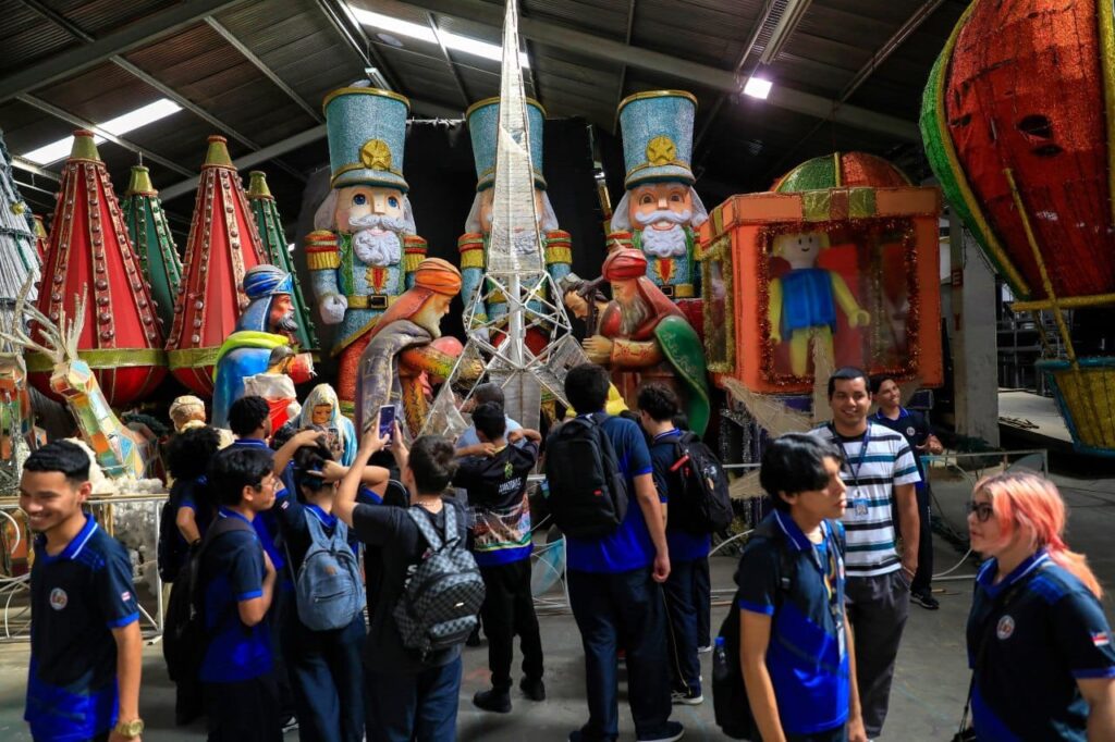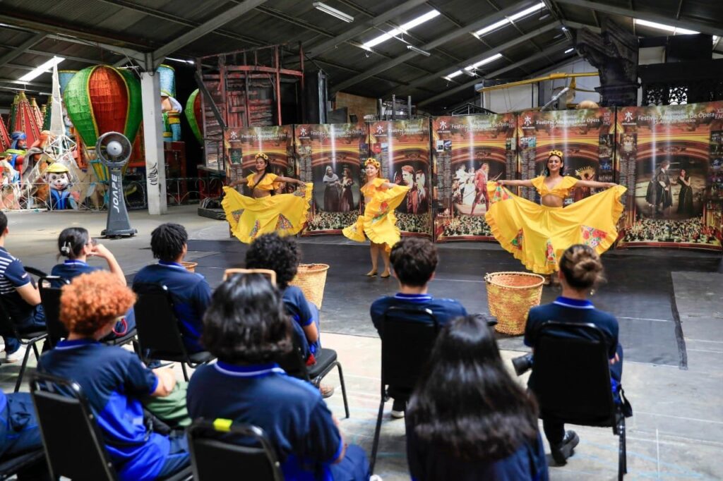 Em comemoração ao Dia do Folclore, a Secretaria de Cultura e Economia Criativa do Amazonas idealizou uma manhã repleta de atividades relacionadas à data, comemorada nesta segunda-feira (22/08). A Central Técnica de Produção (CTP) recebeu os alunos da Escola Estadual Francisco Albuquerque, que participaram de toda a programação. A Central Técnica de Produção, localizada no bairro da Cachoeirinha, é um espaço destinado à produção e armazenamento de cenários, figurinos, adereços e materiais dos espetáculos levados ao Teatro Amazonas e demais equipamentos culturais do estado. Hoje, o armazenamento conta com 45 mil peças de figurinos, 85 cenários diversos e mais 1.800 acessórios e calçados. No início da manhã, os alunos realizaram a visita guiada por todo o local, conhecendo cada corredor, cenário e a equipe que produz os artefatos que dão vida aos espetáculos. A mediadora da visitação foi a coordenadora da CTP, Cieny Farias, que comentou sobre a relevância da programação. “A ideia de trazer os alunos para conhecer o nosso espaço é para que possamos abraçar esses jovens e trazê-los para algo que eles não costumam ter acesso, para que, justamente, consigamos passar para eles esse tão importante legado da cultura”, declarou Cieny.