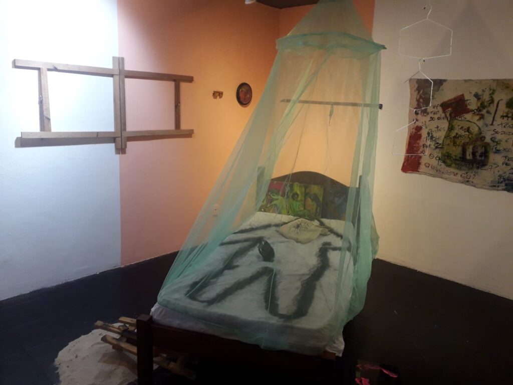 Graduando da Ufam em Artes Visuais e membro do coletivo Arte Ocupa, o artista Andrew Henrique apresenta a obra “Sobre Telas”, uma provocação, segundo o artista, sobre a “pintura”, seus moldes tradicionais em elaboração das telas como superfícies alternativas, em referência no quarto de Van Gogh, ao amplo simbolismo deste ato.