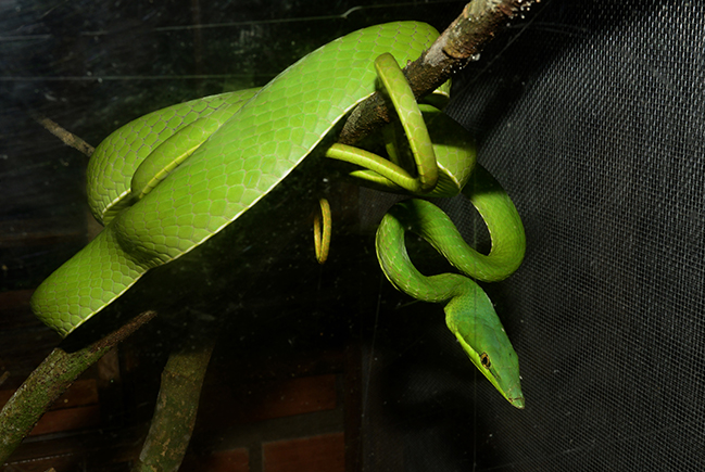 Esses animais habitam terrários desenvolvidos exclusivamente para melhor ventilação do ar e maior segurança para os tratadores, pesquisadores e visitantes.