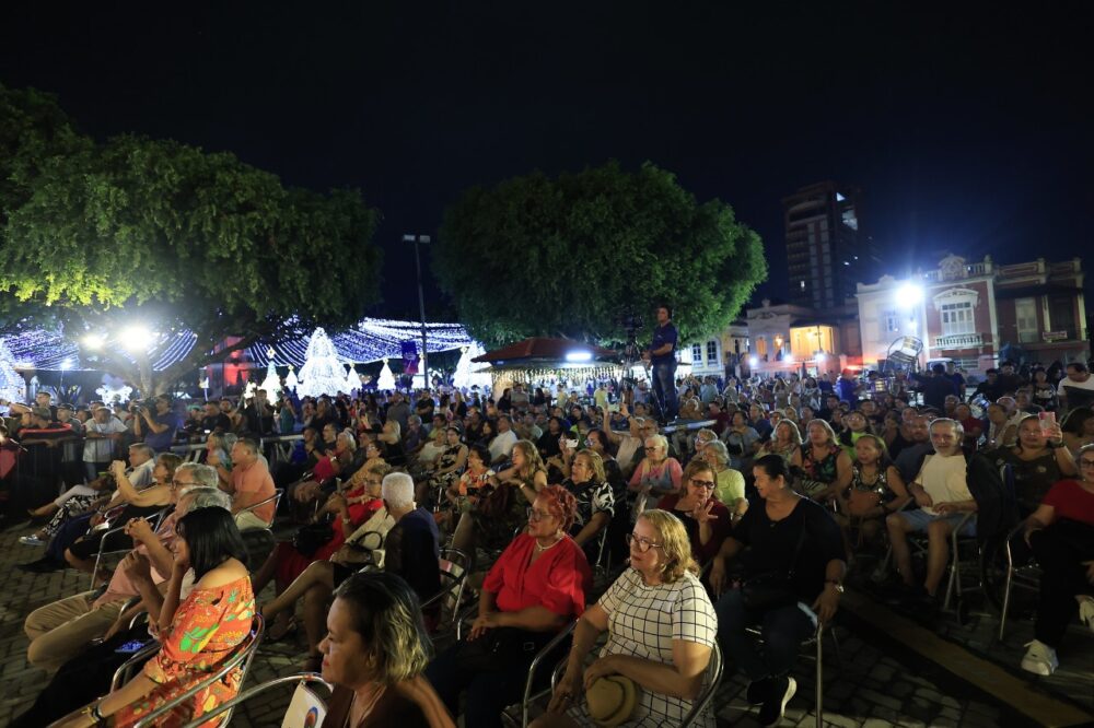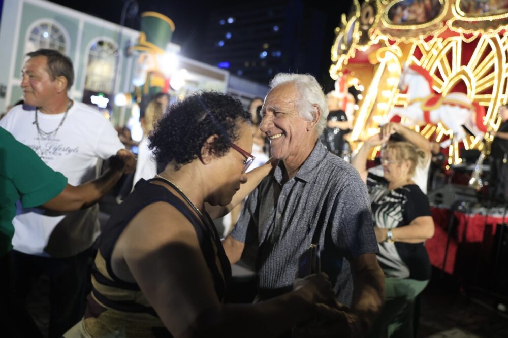 A programação natalina no Largo de São Sebastião nesta sexta-feira (13/12) foi voltada ao público mais maduro, comprovando que “O Mundo Encantado do Natal” tem atrações para todas as idades: das crianças aos vovôs e vovós. Uma edição especial do programa “Carrossel da Saudade”, transmitido ao vivo pela TV Encontro das Águas, fez a alegrias dos fãs de seresta e da dança coladinha popular em décadas passadas.