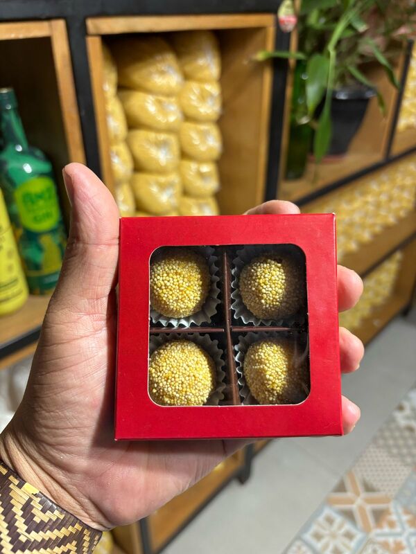 Entre as inovações da Grãos Dourados está o brigadeiro de farinha do Uarini, que une o grão amazônico ao leite condensado, resultando em um doce com sabor autêntico e surpreendente, criado originalmente pela chef Lorraine Santana, e hoje é usado como receita na Grãos Dourados.