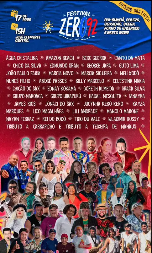 O centro histórico de Manaus será palco de uma grande celebração da cultura amazonense neste sábado, 17 de maio, a partir das 15h, com a realização do Festival Zero 92. Com entrada gratuita, o evento promete reunir música, arte, empreendedorismo e sustentabilidade em um só lugar, transformando a rua José Clemente em um ponto de encontro para todas as tribos.