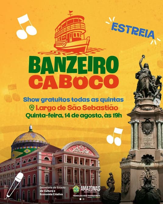 O Largo de São Sebastião, no Centro de Manaus, recebe nesta quinta-feira (14/08), a partir das 19h, a estreia do “Banzeiro Cabôco”, iniciativa do Governo do Amazonas, por meio da Secretaria de Cultura e Economia Criativa. O projeto tem como objetivo valorizar a musicalidade regional e dar visibilidade a artistas locais.