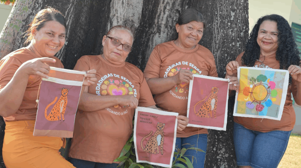 As artesãs integram o projeto Bordando à Paz, criado em 2023, que reúne moradoras da comunidade marcada historicamente pelo garimpo. Hoje, elas encontram na linha e na agulha uma forma de expressão cultural, geração de renda e fortalecimento comunitário. O trabalho, explicam, é coletivo e feito com paciência e força, em longas horas de dedicação que se transformam em peças capazes de emocionar tanto quem borda quanto quem recebe.