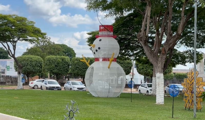 A Praça Nossa Senhora Aparecida está se transformando no principal ponto de celebração do Natal na cidade de Vilhena em Rondônia. O espaço recebe 72 árvores decoradas, bonecos temáticos e milhares de lâmpadas, criando um grande cenário iluminado para marcar a temporada.