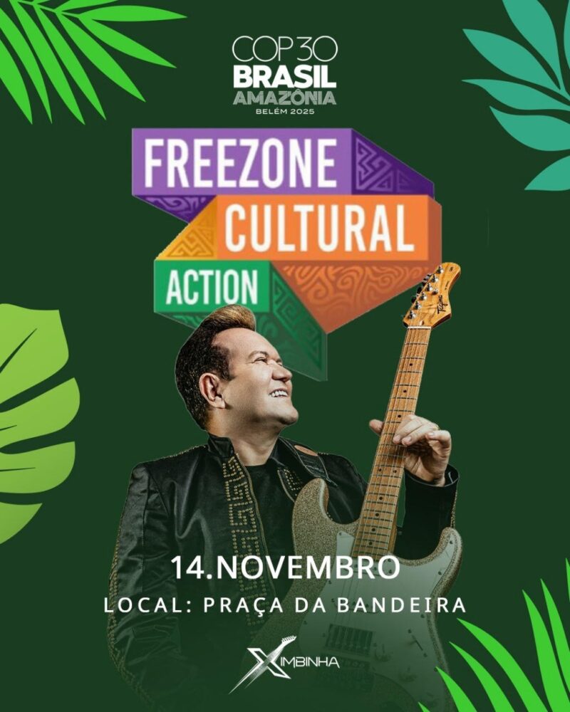 A conferência, que transforma Belém no epicentro das discussões climáticas globais pelos próximos dias, também será palco de uma programação cultural diversa e vibrante, com shows que celebram a arte e a música brasileira. Ximbinha se apresenta no palco 02 da ZONA SONORA, um dos principais palcos do evento, localizado no Espaço Freezone Cultural Action, na Praça da Bandeira, a partir das 23h30.