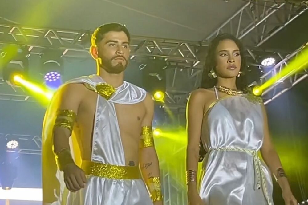 O desfile de traje de banho levantou aplausos de quem acompanhava cada entrada dos candidatos. Cinco rapazes e cinco moças disputaram as vagas na final, exibindo charme, elegância e confiança. Os jurados avaliaram cada apresentação, que abriu caminho para a grande final do concurso, marcada pela etapa de gala.
