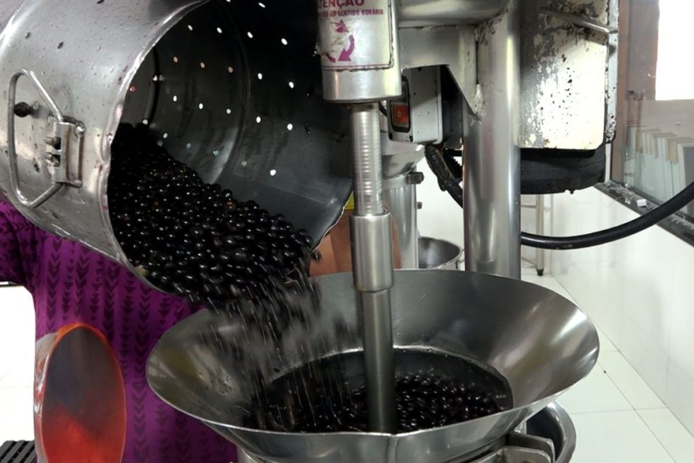 Luana explica que o processo exige atenção desde a chegada do fruto. “Da forma que ele vem da mata, ele precisa ser todo autocuidado pela gente. A gente faz a limpeza, a esterilização, passa pelo resfriamento, bate na máquina até chegar nessa consistência ideal. Só assim dá para oferecer um produto de qualidade”, detalha.