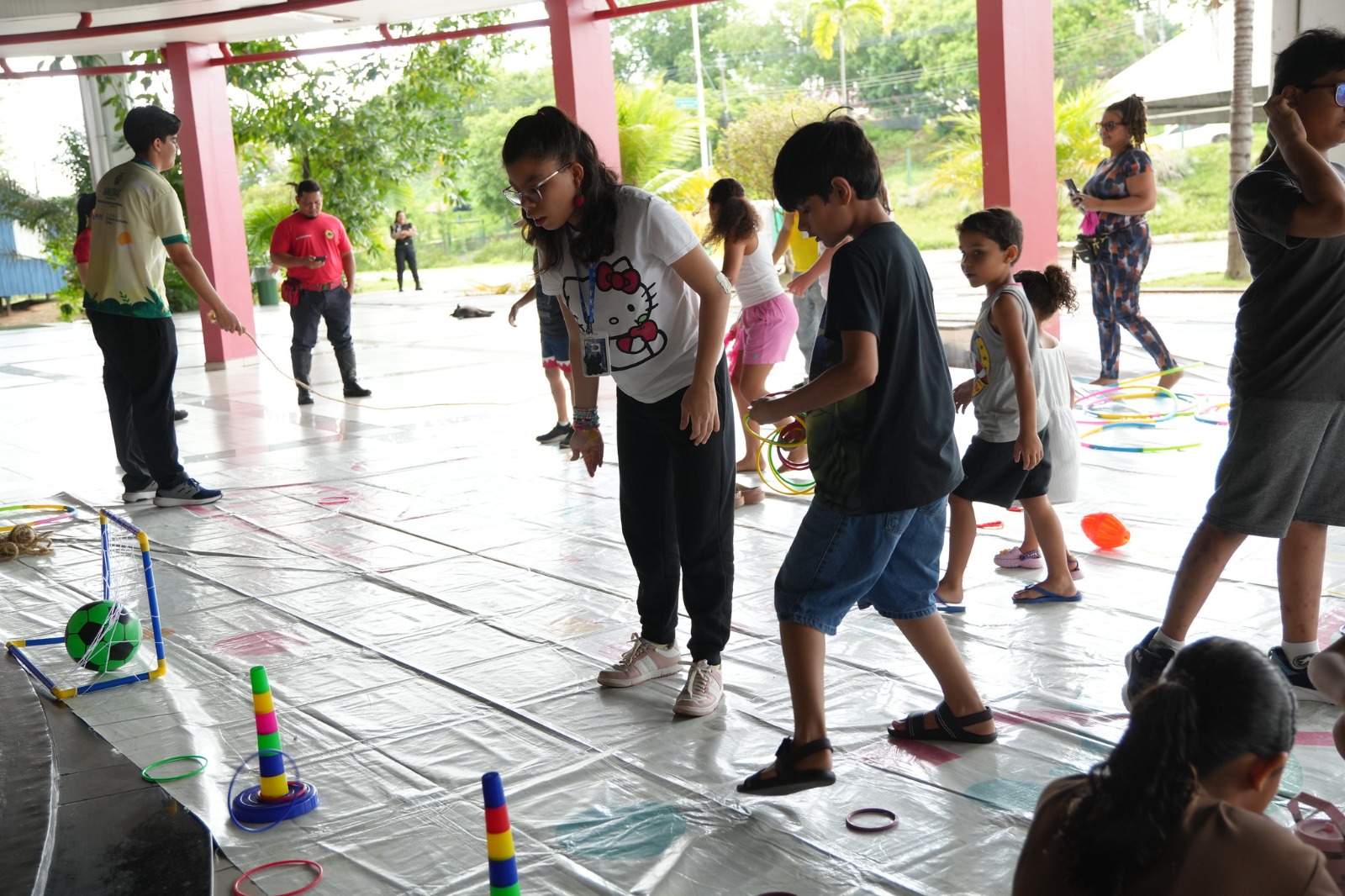 Após a visita, o público participou de atividades lúdicas e educativas, como a oficina de pintura dos bois Garantido e Caprichoso e o resgate de brincadeiras populares, entre elas pula-corda, bambolê, amarelinha e cabo de guerra, incentivando a convivência, o aprendizado e o lazer longe das telas.