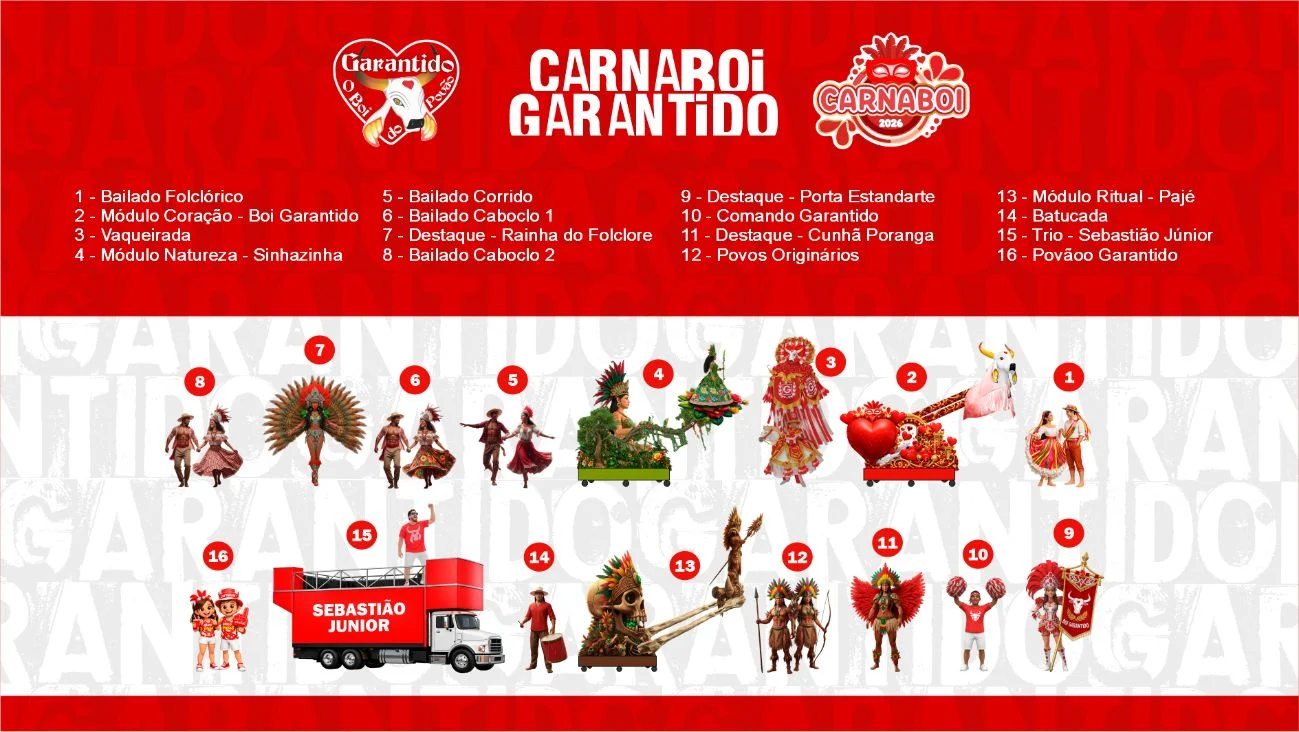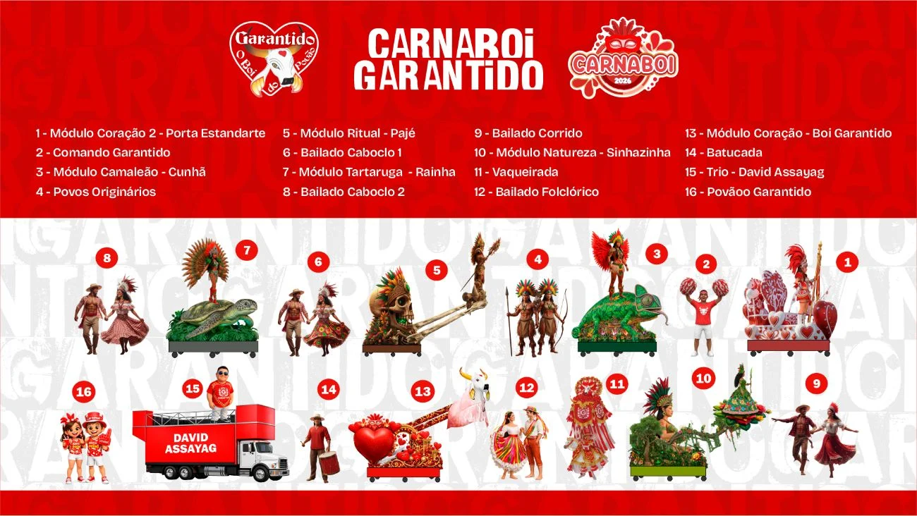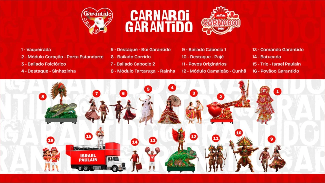 O Boi Garantido revelou o formato da apresentação que será levada ao Carnaboi 2026, na terça-feira de Carnaval (17), em Parintins. O evento integra o Circuito Carnailha e marca o início da agenda da agremiação rumo à temporada do Festival Folclórico.